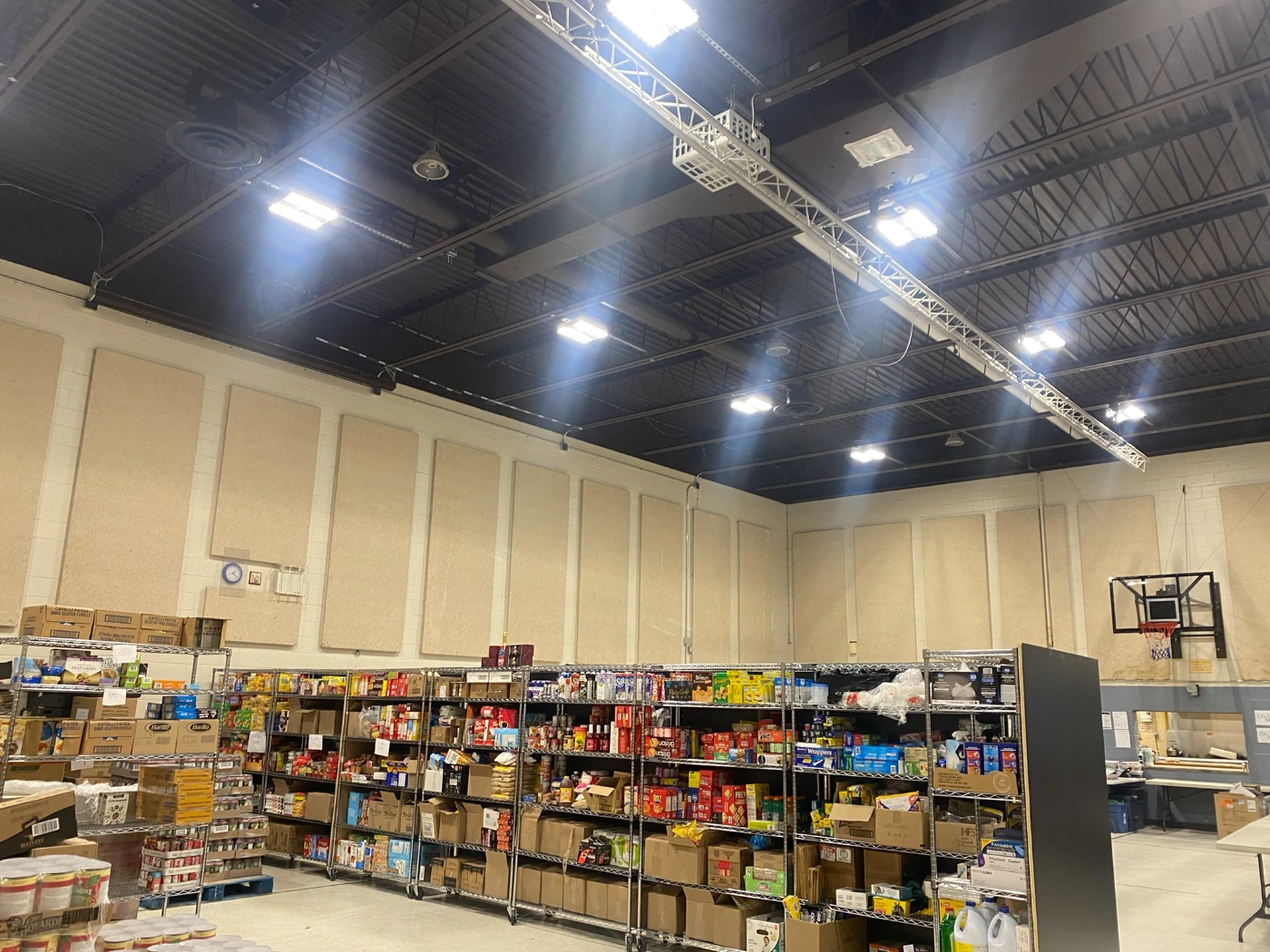 Bethel Pentecostal Church was running out of room for their emergency foodbank operations. They utilized the high ceilings of their gymnasium to build a storage facility and to free up space to better serve their clients.